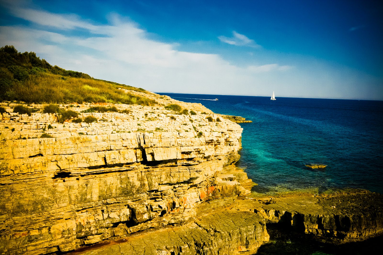Am südlichsten Zipfel Istriens erstreckt sich eine zerklüftete Küste mit mehreren Meereshöhlen. Die Große Kolombarica-Höhle ist bekannt für grün-blaue Lichteffekte, die ein Gefühl einer versteckten Lagune erzeugen. Naturschutzgebiet seit 1996 - ideal zum Schnorcheln und Erkunden per Dingi auf dem Weg von der Marina Veruda Richtung Kvarner.