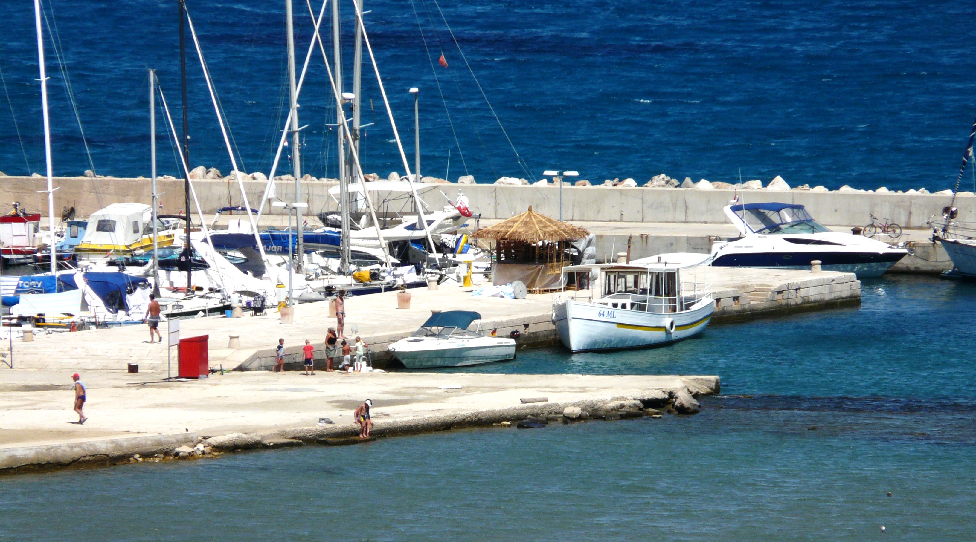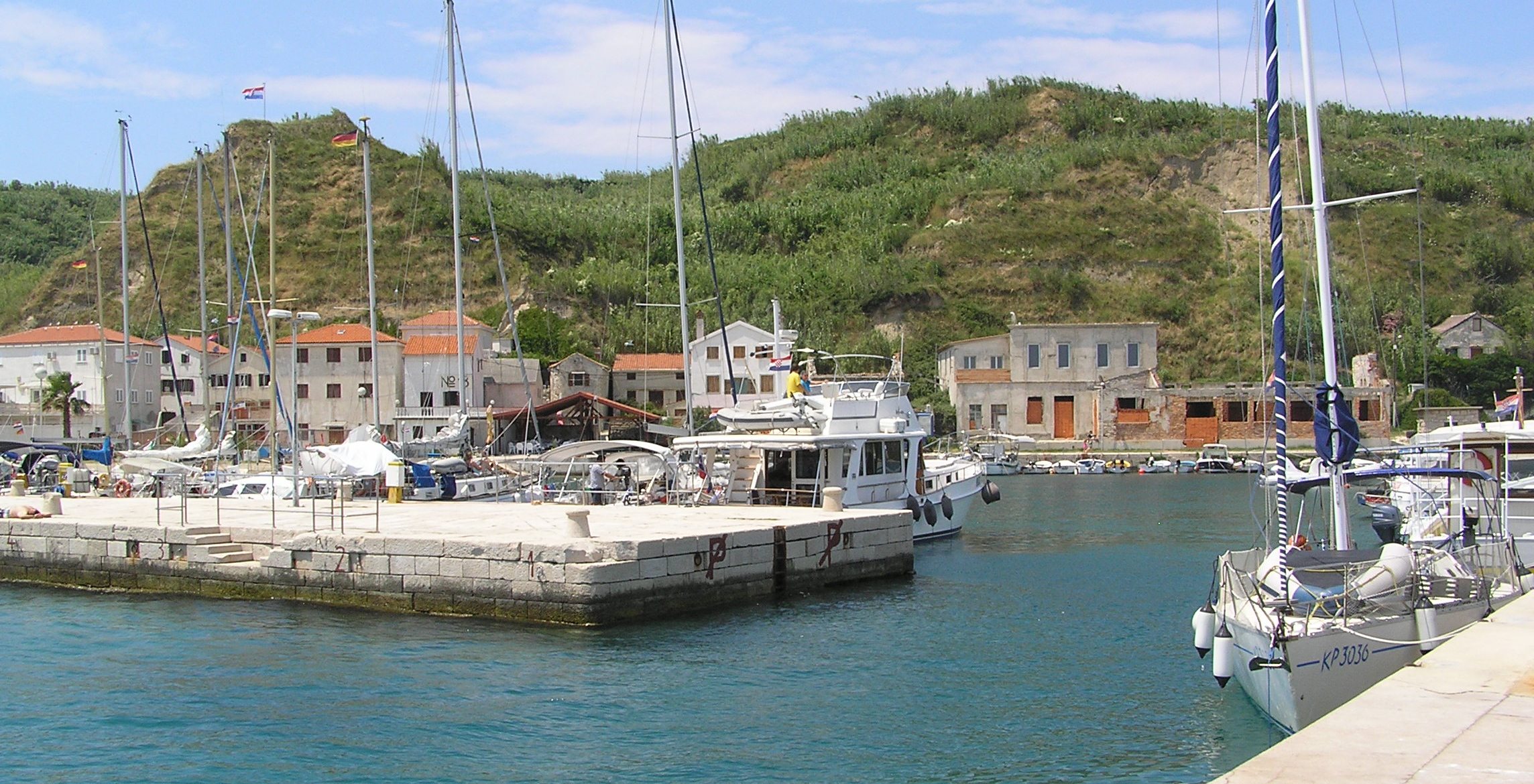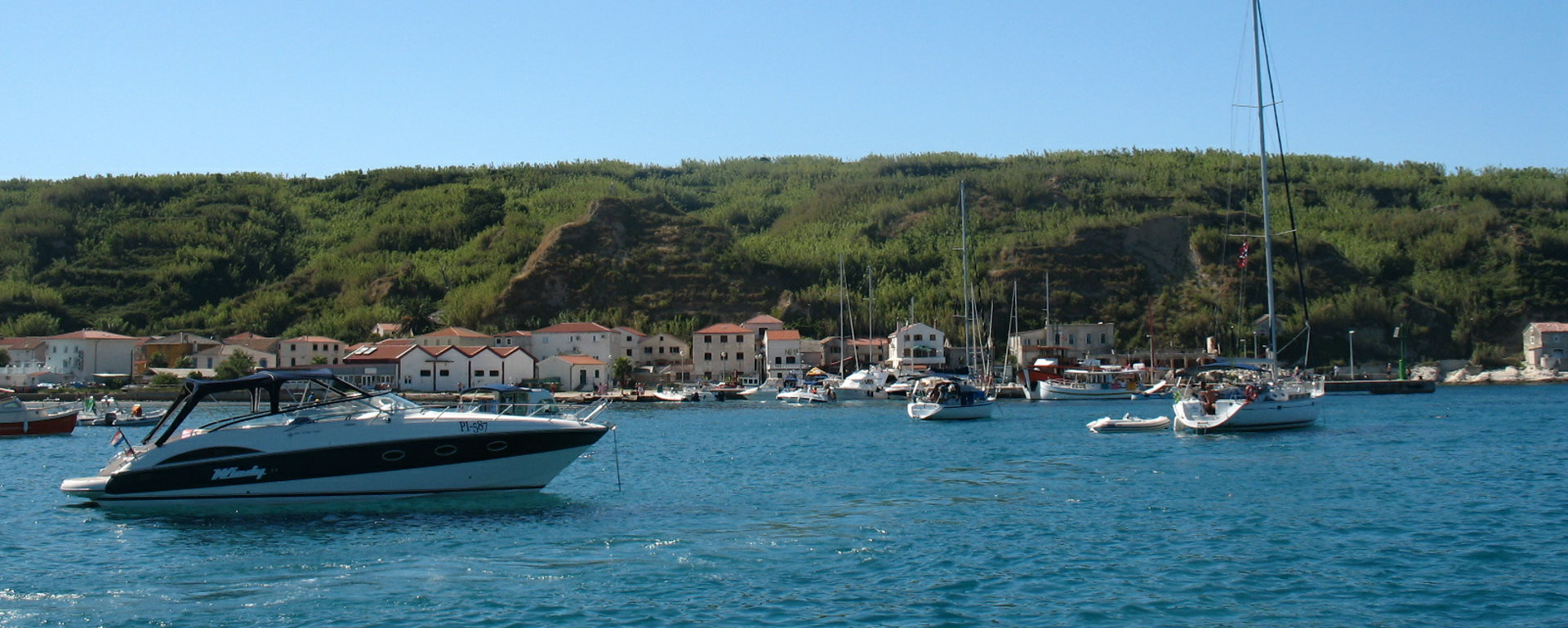 Bei Bora ist der Hafen nicht anzulaufen! Das Bojenfeld in Uvala Bok bietet besseren Schutz bei Jugo (S), ist aber bei Bora ebenfalls offen.