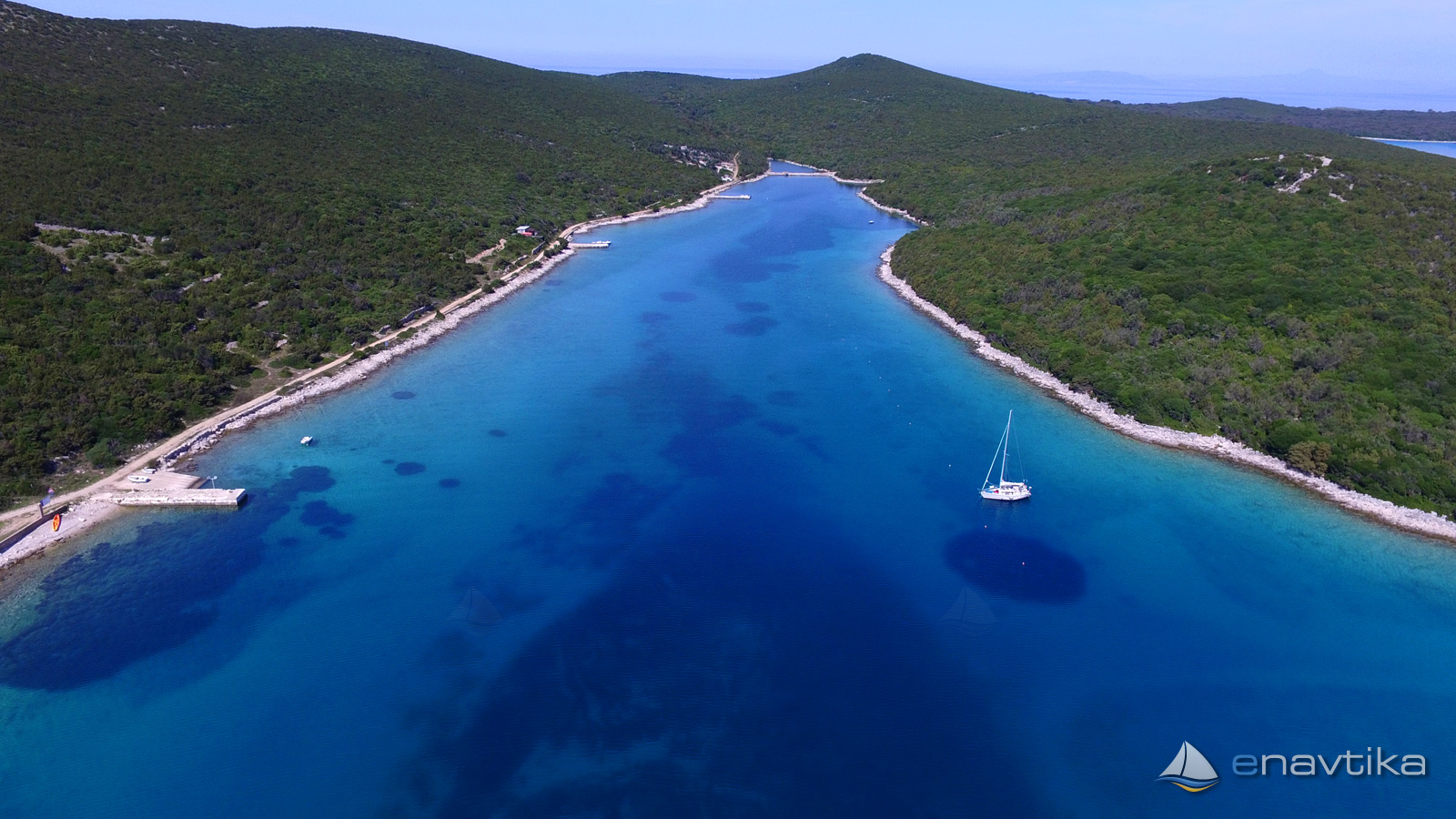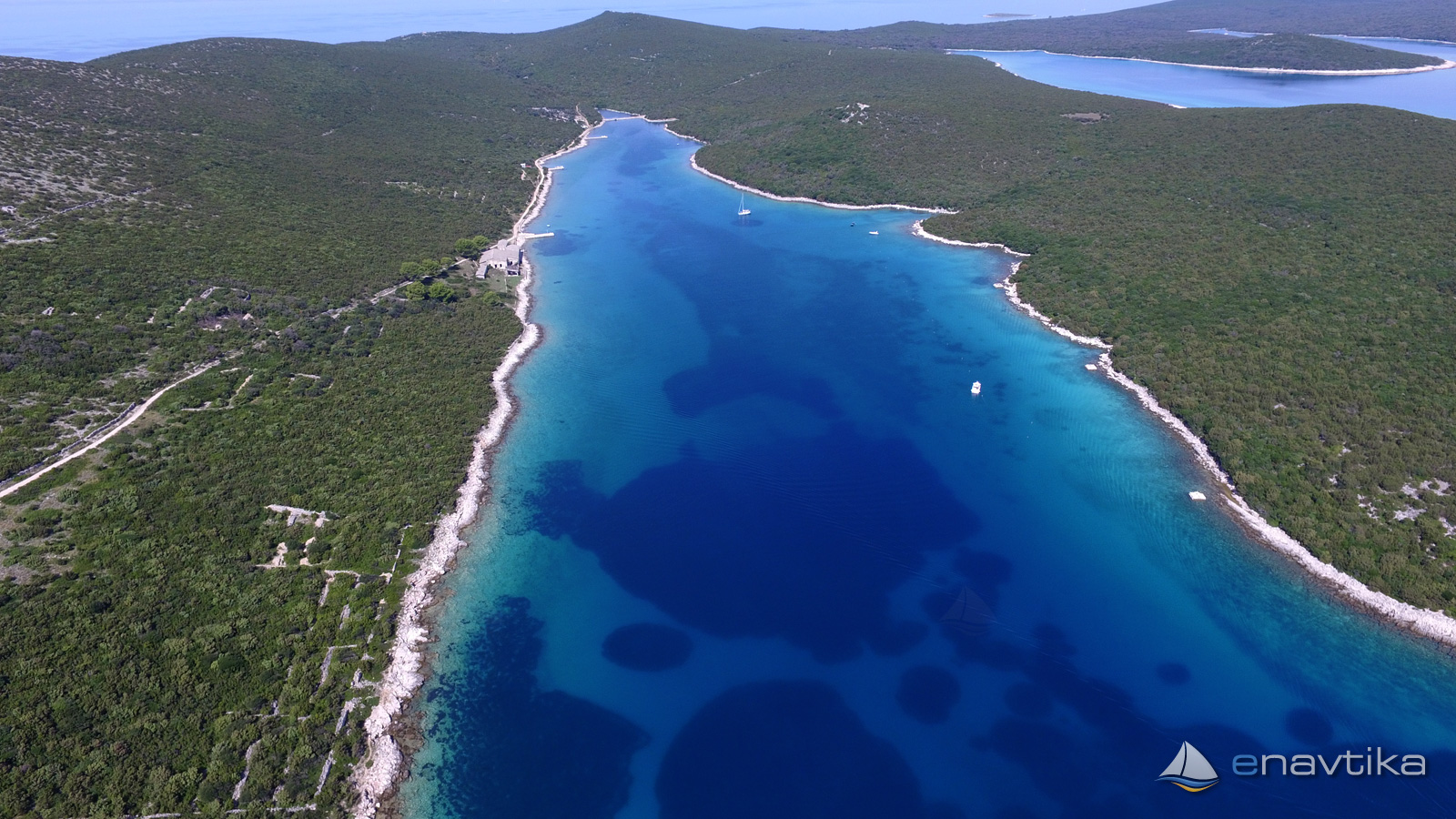 Die Bucht Uvala Maracol liegt an der Südostseite der autofreien Insel Unije. Der italienische Name "Porto Lungo" (langer Hafen) beschreibt die Bucht treffend - sie erstreckt sich tief ins Land.
