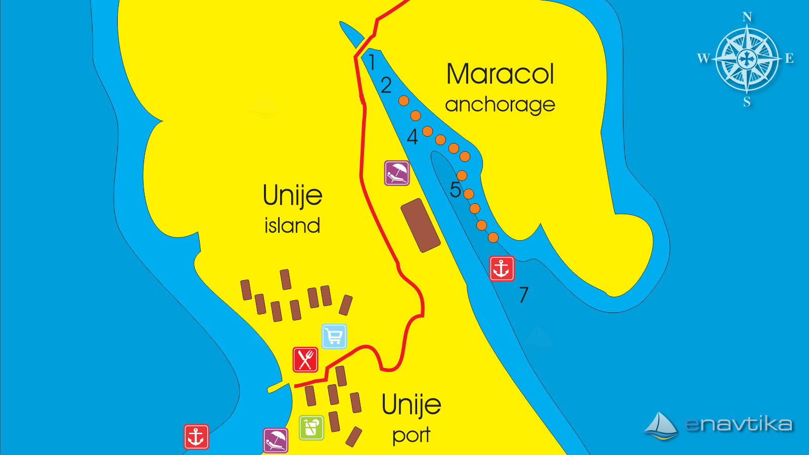Das Ankern mit eigenem Anker ist in der Bucht nicht erlaubt. Es dürfen nur die Mooringbojen genutzt werden!